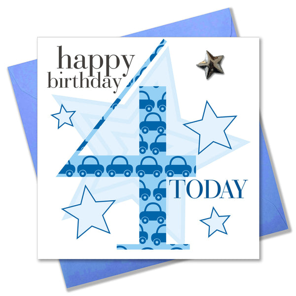Birthday Card, Age 4 Boy Blue, Embellished with a padded star