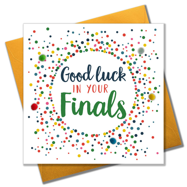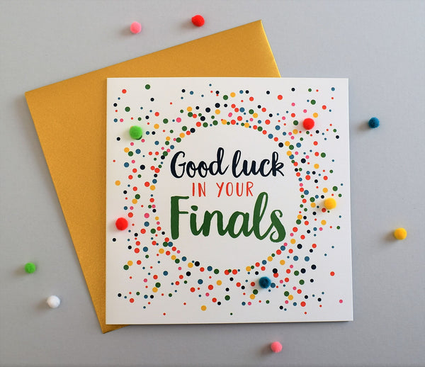 Good Luck in your Finals Card, Dots, Embellished with pompoms