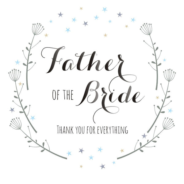QUI024Send this modern card to thank the Father of the Bride after the big day. With delicate scattered stars and florals, this card looks hand written and comes with a matching gold envelope.