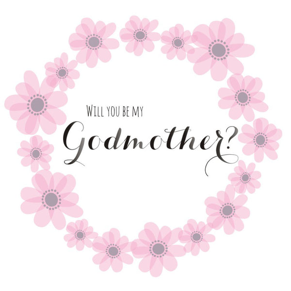 Religious Occassions Card, Pink Flowers, Will you be my Godmother?