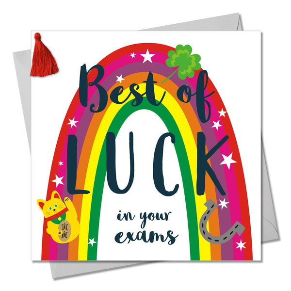 Good Luck Exams Card, Rainbow, Embellished with a colourful tassel