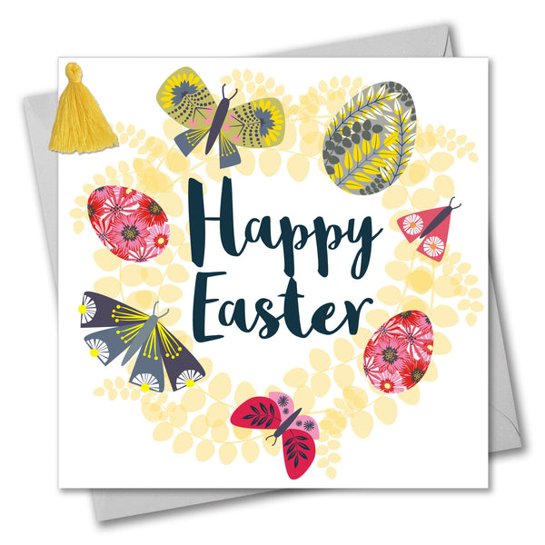 Easter Greeting Card, Butterflies & Eggs, Embellished with a colourful tassel