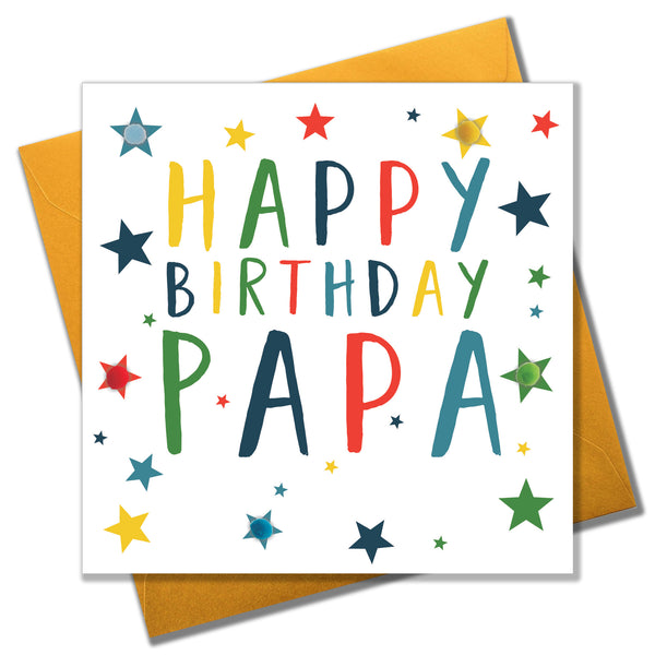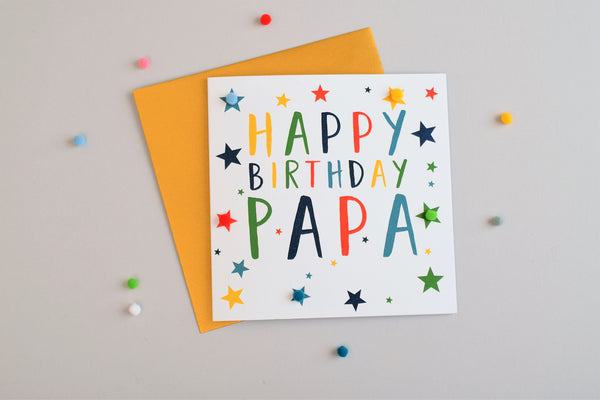 Birthday Card, Stars, Happy Birthday, Papa, Embellished with colourful pompoms