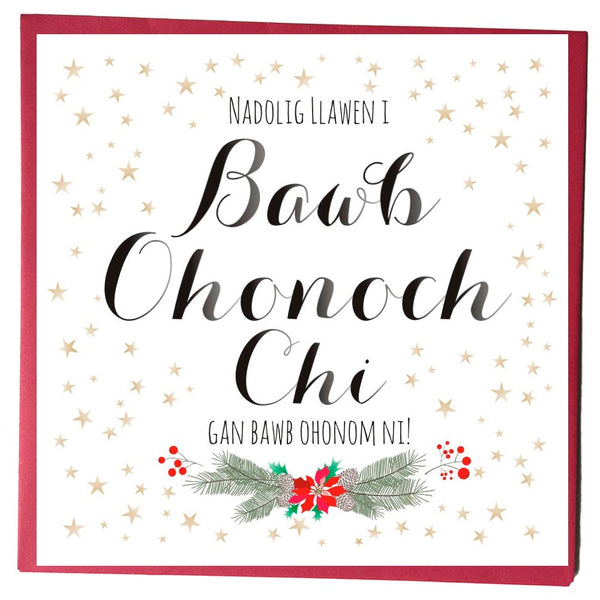 Welsh Christmas Card, Nadolig Llawen, To All of You, Stars and Berries