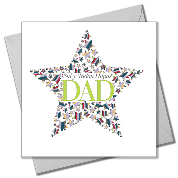 Welsh Father's Day Card, Sul y Tadau Hapus, Dad, Star, With Love on Father's Day