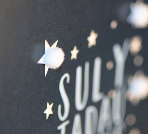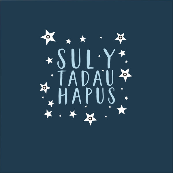 Welsh Father's Day Card, Sul y Tadau Hapus, White Stars, Pompom Embellished