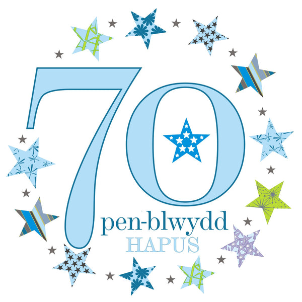 • Welsh Birthday Card, Penblwydd Hapus, Blue Age 70, Happy 70th Birthday