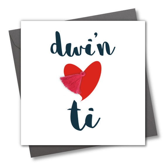 Welsh Valentine's Day Card, Love, I heart you, Tassel Embellished