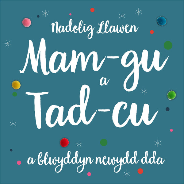 Welsh Grandma and Grandad Christmas Card, Tad-cu a Mam-gu, Pompom Embellished