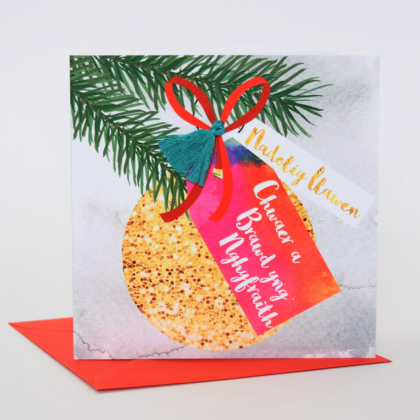 Welsh Sister & Brother in law Christmas Card, Nadolig Llawen, Tassel Embellished
